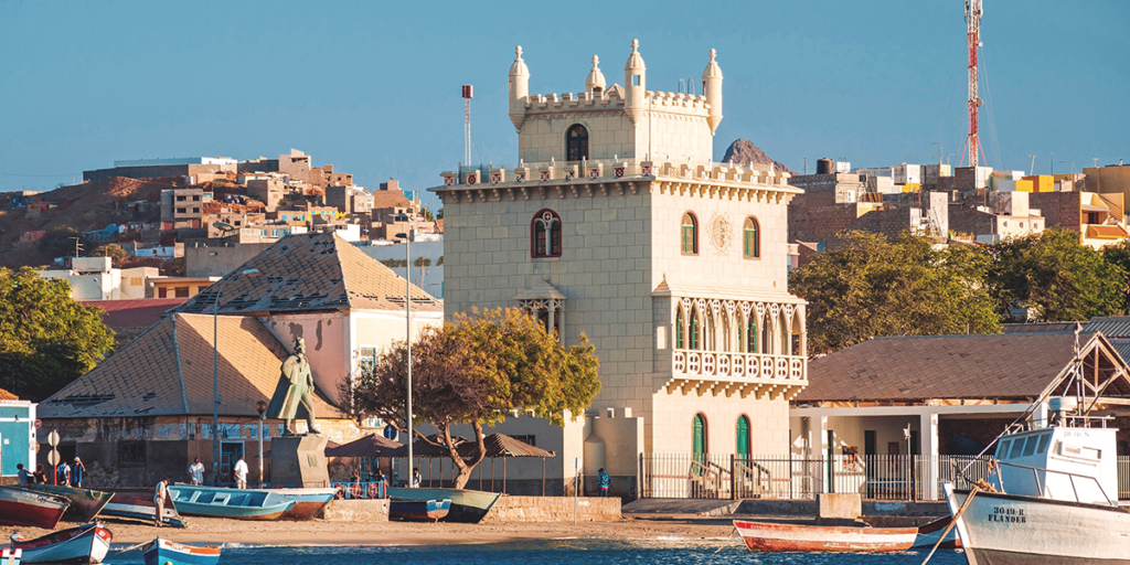 A Baía do Porto Grande, em Mindelo, é um local belo para se visitar. Vista do mar, os edifícios que se amontoam perto das suas margens, misturando os edifícios coloniais e imponentes, com as casas garridas que foram sendo construídas, dá-lhe um ar pitoresco único.